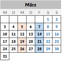 Samstags: 08:35 – 15:25 Uhr (Online)